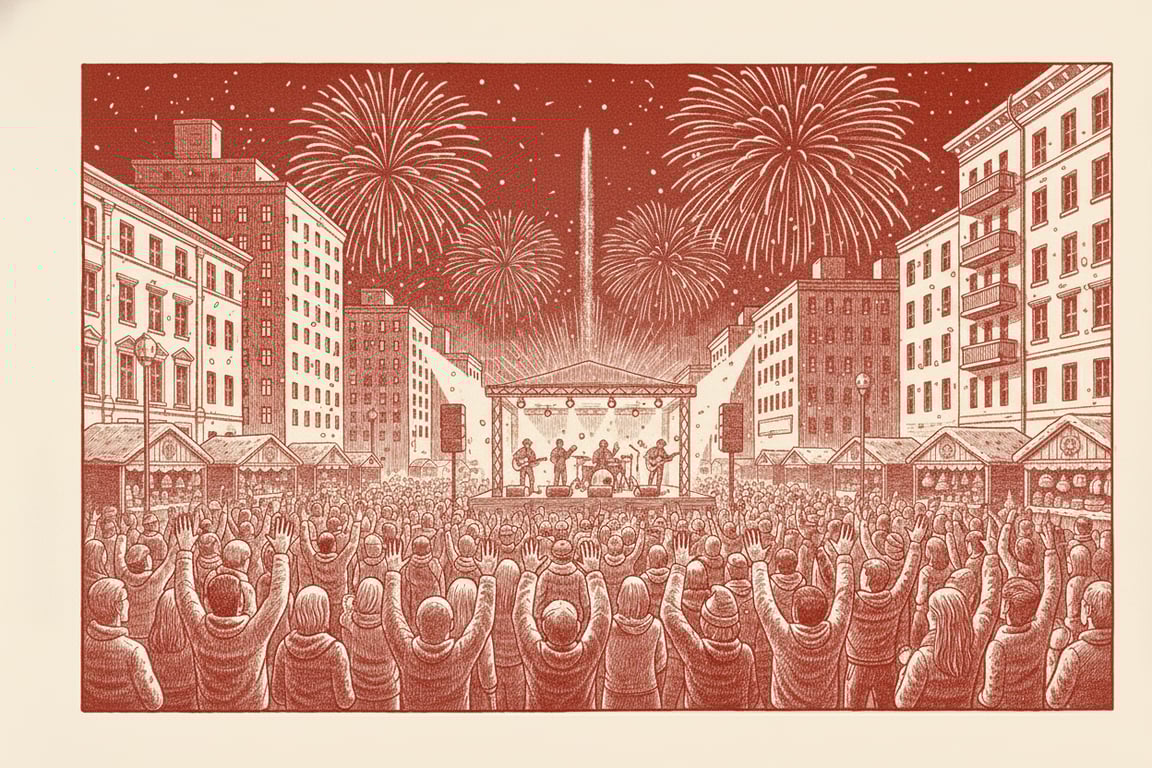 Concerte în aer liber, DJ, artificii, countdown.